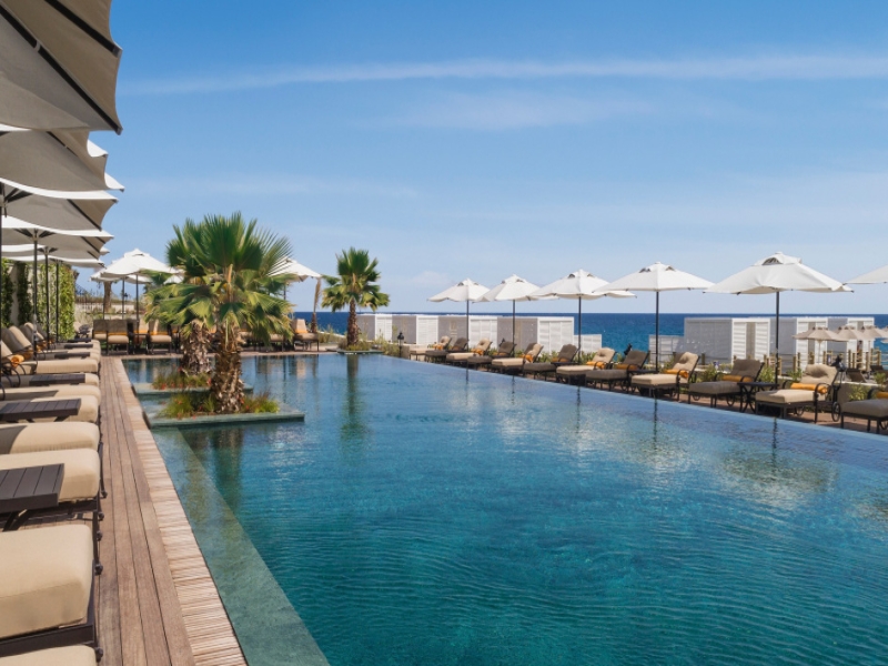Private Beach and Pools: The resort boasts a pristine private sandy beach with crystal-clear waters, alongside several outdoor pools, including an infinity pool, a children’s pool, and an indoor heated pool for year-round enjoyment.